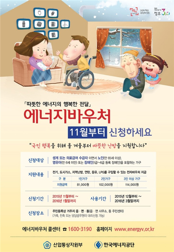 에너지 취약계층에게 에너지바우처(이용권)을 지급하여