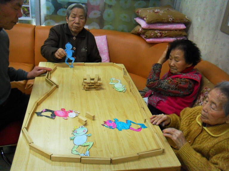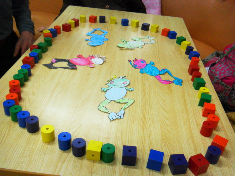개구리를 색칠하고 가베로 울타리를 쳐서