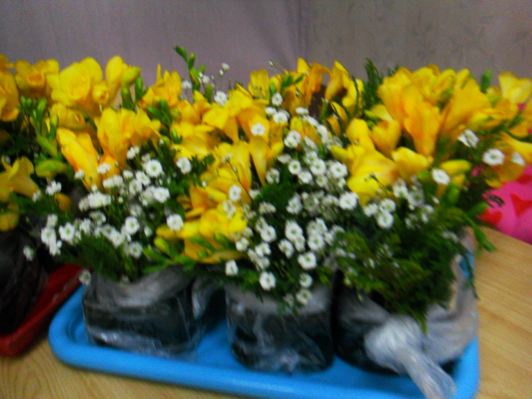 오아시스에 후레지아로 봄을 연출해 보았습니다.