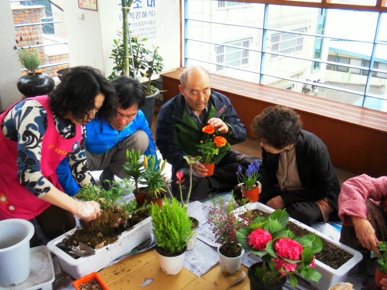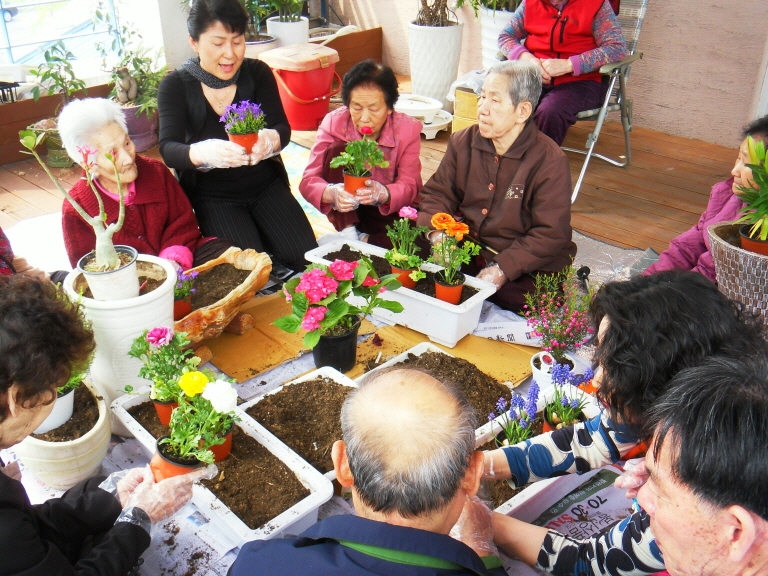 전날 팔공산 나들이길에 사온 봄꽃들을 심기로 했습니다.흙을 만지며 감각도 키우고 꽃향기 맡으며 어르신들끼리 서로 도와가며 이야기 나누고 함박 웃음 지으며 예쁜 미니정원을 만드셨습니다.어르신들께서 심으신 예쁜꽃보러 놀러 오세요~~~!!