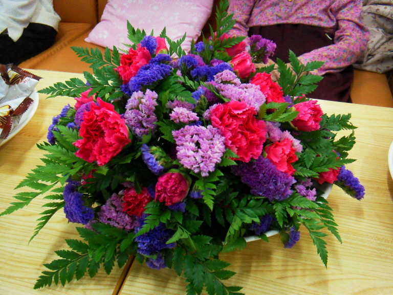 카네이션과 보라빛스타치스의 색깔이 어버이의