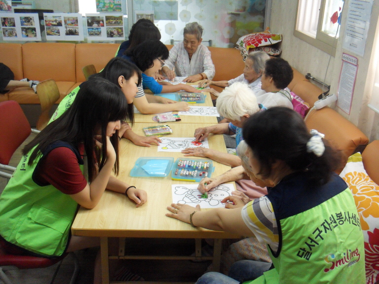 어르신들께서 직접하신 그림이 한펴의 작품으로 탄생되었죠~~!