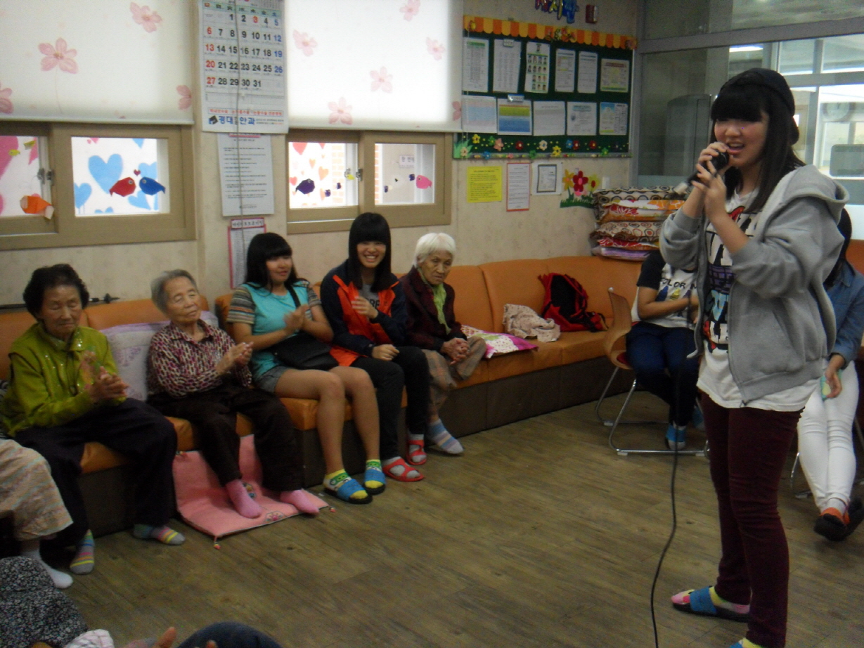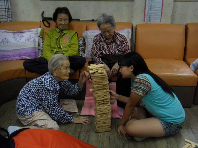 어르신들과 그림도 그려보고, 이야기도 읽어드리고,젠가로 탑을 쌓아 하나씩 빼보는 게임도 해 드렸습니다.그리고 마지막으로 어르신과 함게하는 노래부르기까지 학생들의노력에 어르신들의 박수가 이어졌습니다.너무 재미있어하는 학생들과 어르신들 때문에 그날 담당 선생님께서 댁에 좀 많이 늦게 가셨지요~~!!늘 애써주심에 감사합니다.