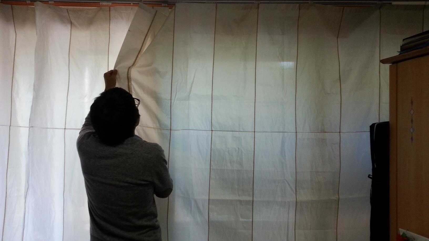 사계절 내내 햇빛과 바람이 많이 들어와서 불편하신 재가 어르신(박O영ct)댁에 오늘 주거환경개선서비스를 제공하였습니다^^저희가 비록 전문가는 아니지만, 서툰 솜씨로 커튼을 달아드렸습니다~어르신께서 좋아하시고 고맙다며 음료수까지 내어주셨습니다^^힘들고 땀이 흘렀지만, 좋은 경험이 되었습니다ㅎ 다음엔 더 잘 달아 드리겠습니다!!