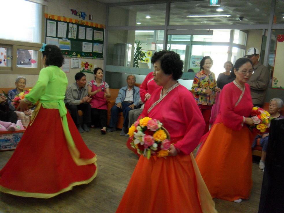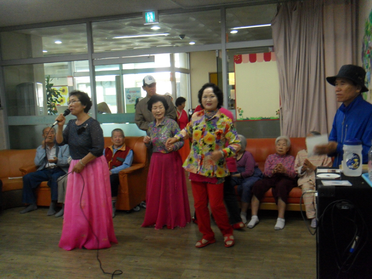 온누리복지회 소속 늘푸름봉사단어르신들의 멋진 공연이 있었습니다.춤이면 춤, 노래면 노래, 어느것 하나 흥겹지 않은 것이 없이너무나 즐거운 공연을 보여 주셔서 관람하시는 우리 어르신들의 얼굴에 웃음이 떠나질 않았습니다.같은 연배이시면서도 바로 지금이 청춘인듯 열정을 보여주셔서 감사합니다.