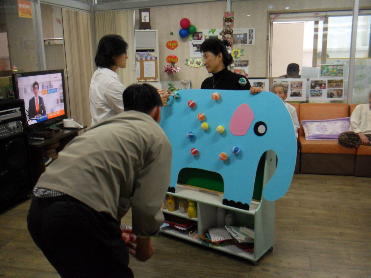 사회복지 실습선생님들이 직접 발품 팔아 만들어 주신 코끼리 찍찍이예요.너무나 깜찍하고 귀엽지요~~!!!참신한 아이디어에 감탄하고 어르신을 생각하는 마음씀씀이에 더 없이 감사합니다.덕분에 즐거운 놀이 잘 할께요~~!!!