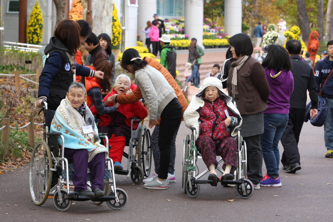대구수목원 국화축제에 다녀왔습니다.낮은 기온으로 추울 것을 예상하여 두터운 옷을 입고 출발했는데,그럼에도 불구하고 어르신들이 느끼기에 많이 추울 것 같아, 봉사자들이 저마다 옷을 벗어 어르신들에게 입혀주었습니다. 시간이 좀 지나자, 해가 드리우고 볕이 따뜻해져서 다행히 많이 춥지는 않았던 것 같습니다. 수고해주신 우리 경상지부와 충청지부 써포터즈팀에게 감사의 인사를 드립니다.