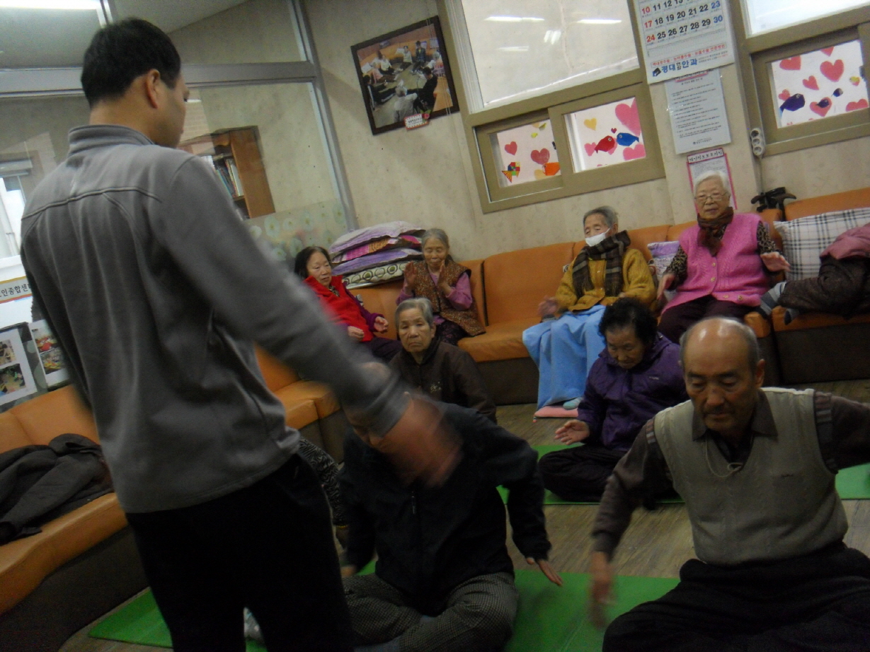 숨을 들이마시고 내쉬는 등의 동작을 하면서